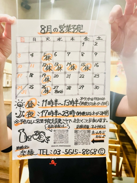 遅くなりましたが2025年8月の営業予定表です◎基本火曜日定休とお盆休み12日〜15日まで頂戴いたしますm(_...