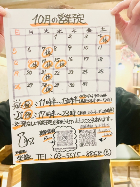 9月も沢山のご予約ご来店、ありがとうございました(^^)10月も宜しくお願いいたします◎添付のカレンダー...
