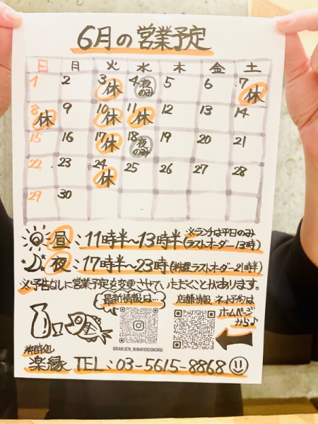 4月も沢山のご来店、ありがとうございました😊2025年5月の営業予定です◎来る、5月19日(月)で楽縁...